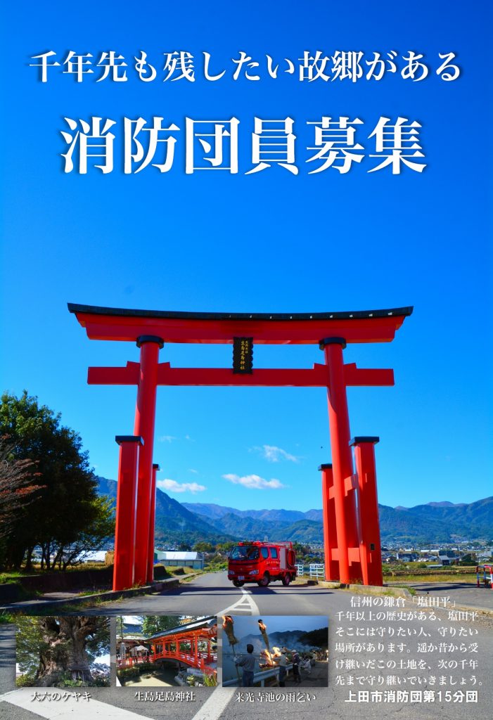 一人でも多くの方に消防団を経験して頂き重要文化財を多数有する塩田平を守っていきたい!