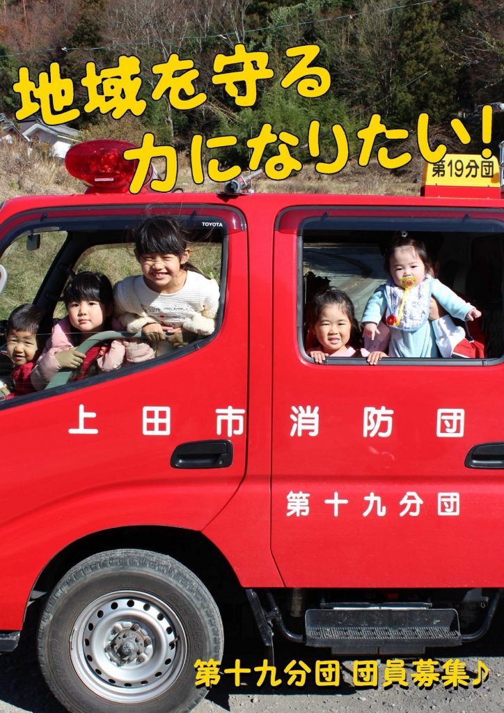 丸子第4分団は依田地区を担当しています。団員募集をテーマに、ポスターを作成しました。