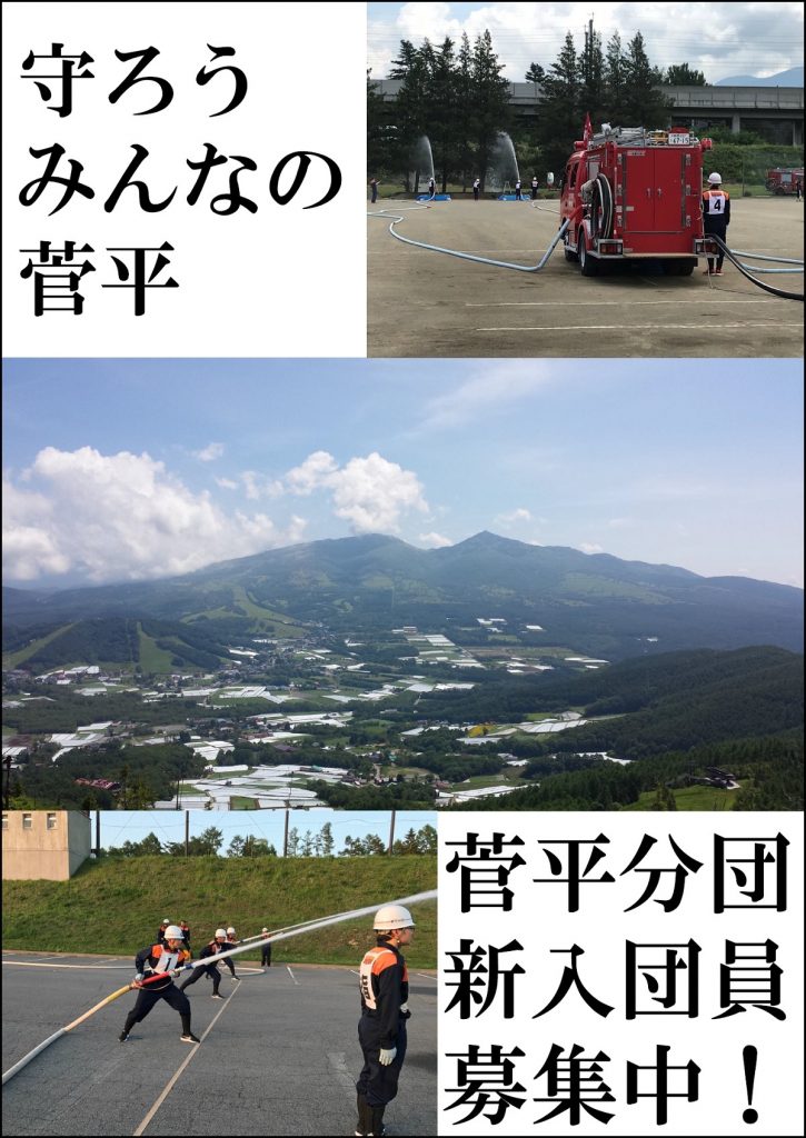 我々が生活する菅平高原は、中央の写真からわかるように雄大な自然に囲まれている地域です。この美しい自然と地域住民の安全を守るため、団員一丸となって精力的に活動しています。