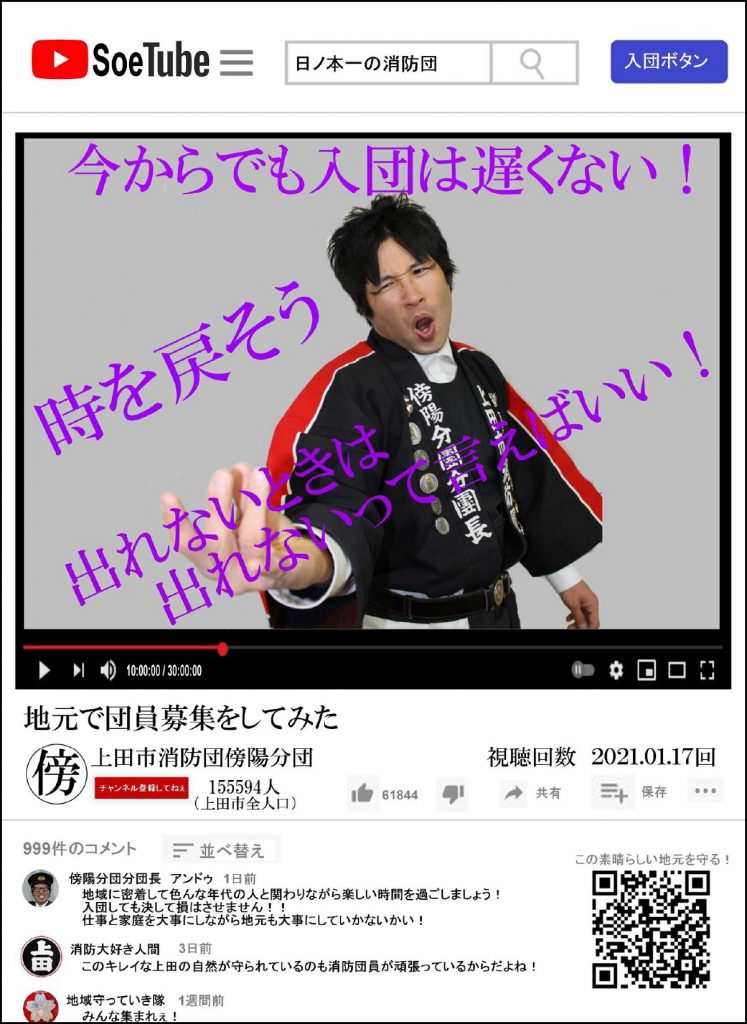 コロナ禍の今、我々消防団に何ができるのか?そもそも消防団は何のために活動しているのか?地域のため。家族のため。自分のため…。様々な思いが駆け巡ります。そんな思いをこのポスターに込めてみました。ご堪能ください。